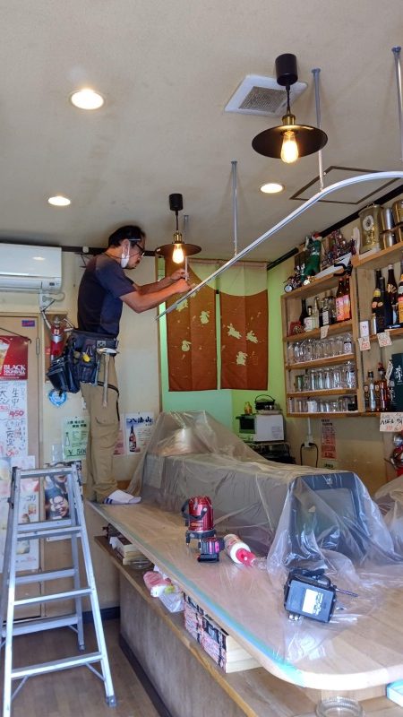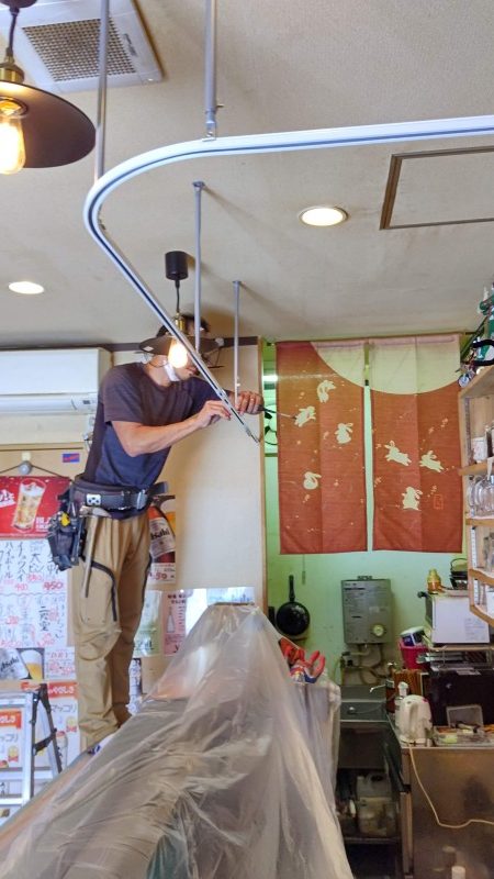 大阪市の店舗にて新型コロナウイルス対策のためのカーテンレール設置、アクリル板の設置を行いました。